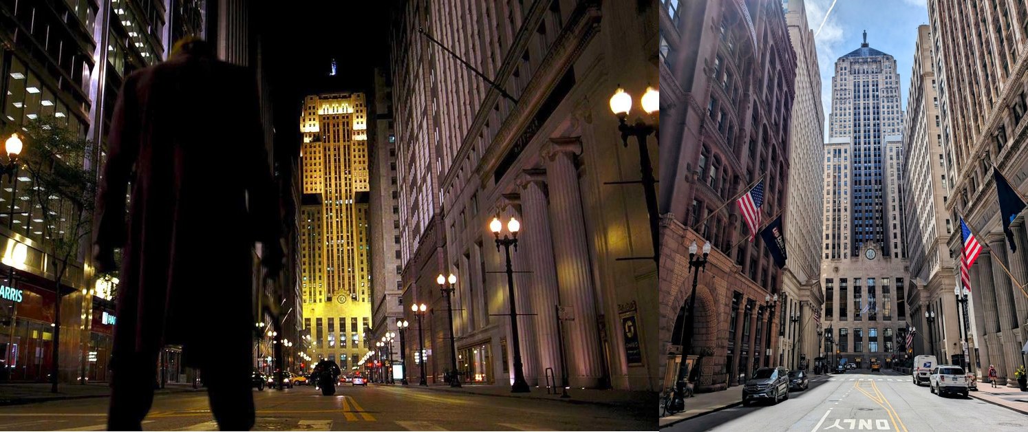 Chicago became Gotham in Nolan’s Batman series. The elevated train of Batman Begins, runs around Chicago with less CGI. Wayne Tower is the Board of Trade Building. There’s even a water tower with exposed water pipes inside, waiting for Ra’s Al Ghul.