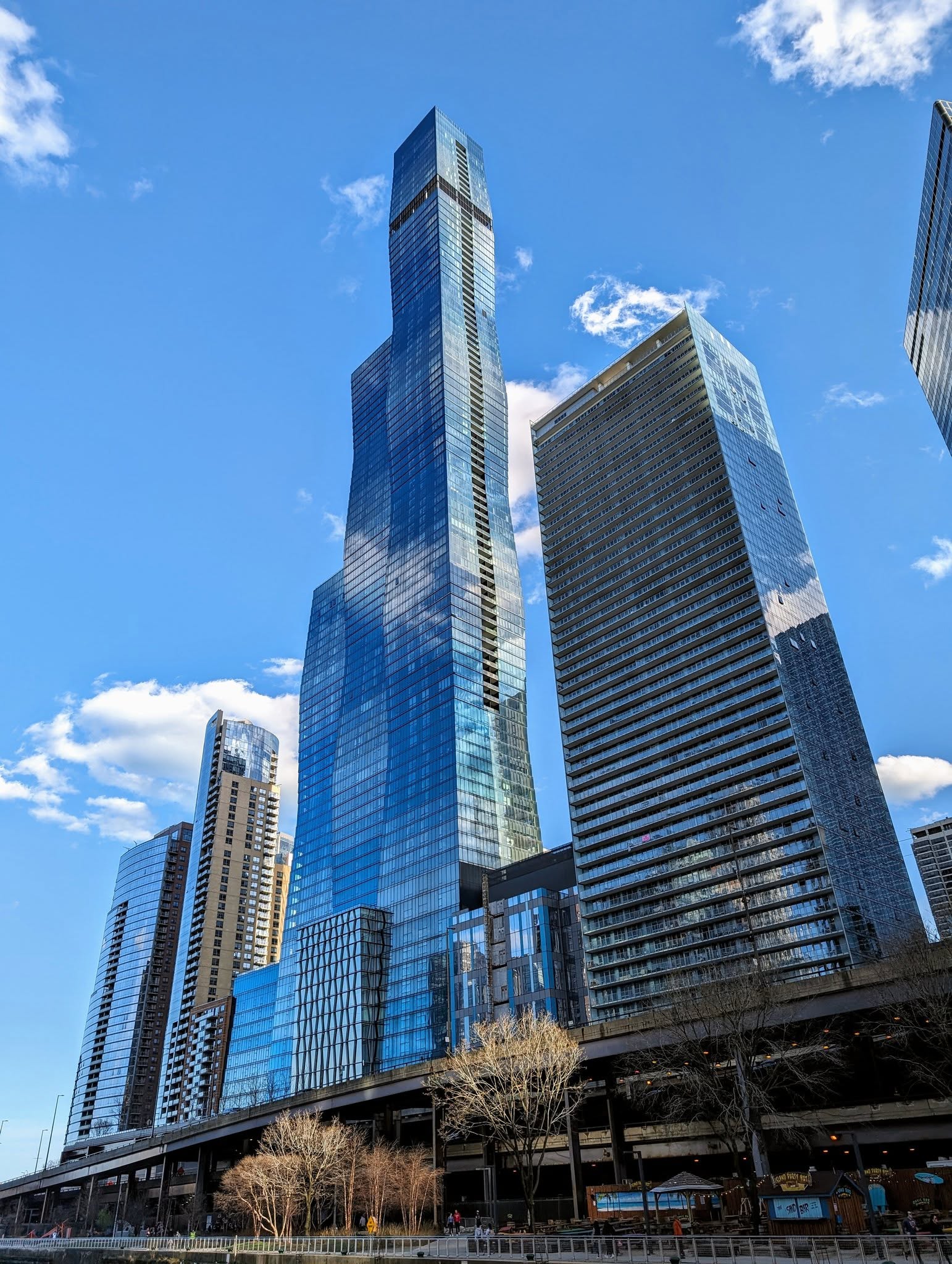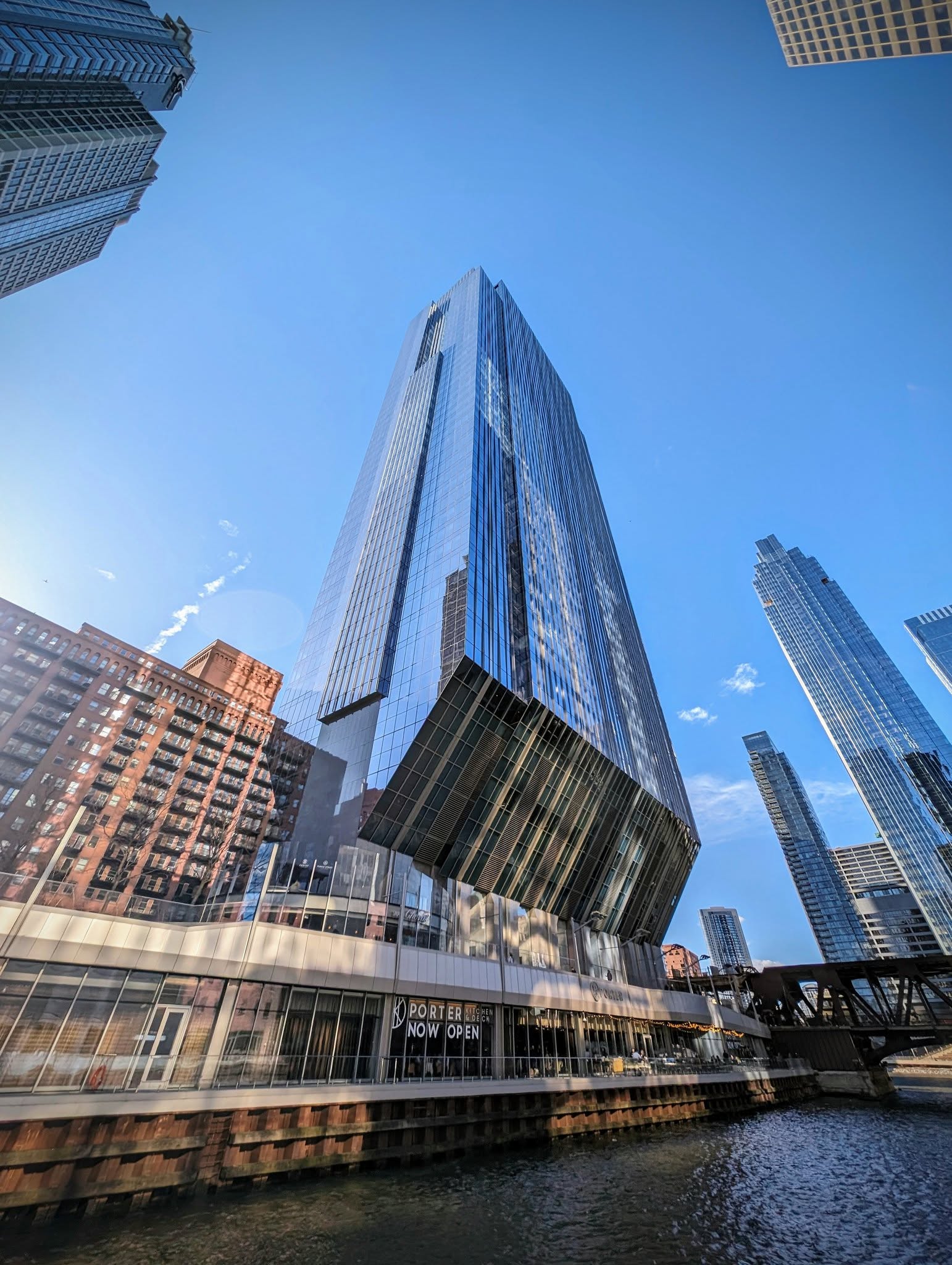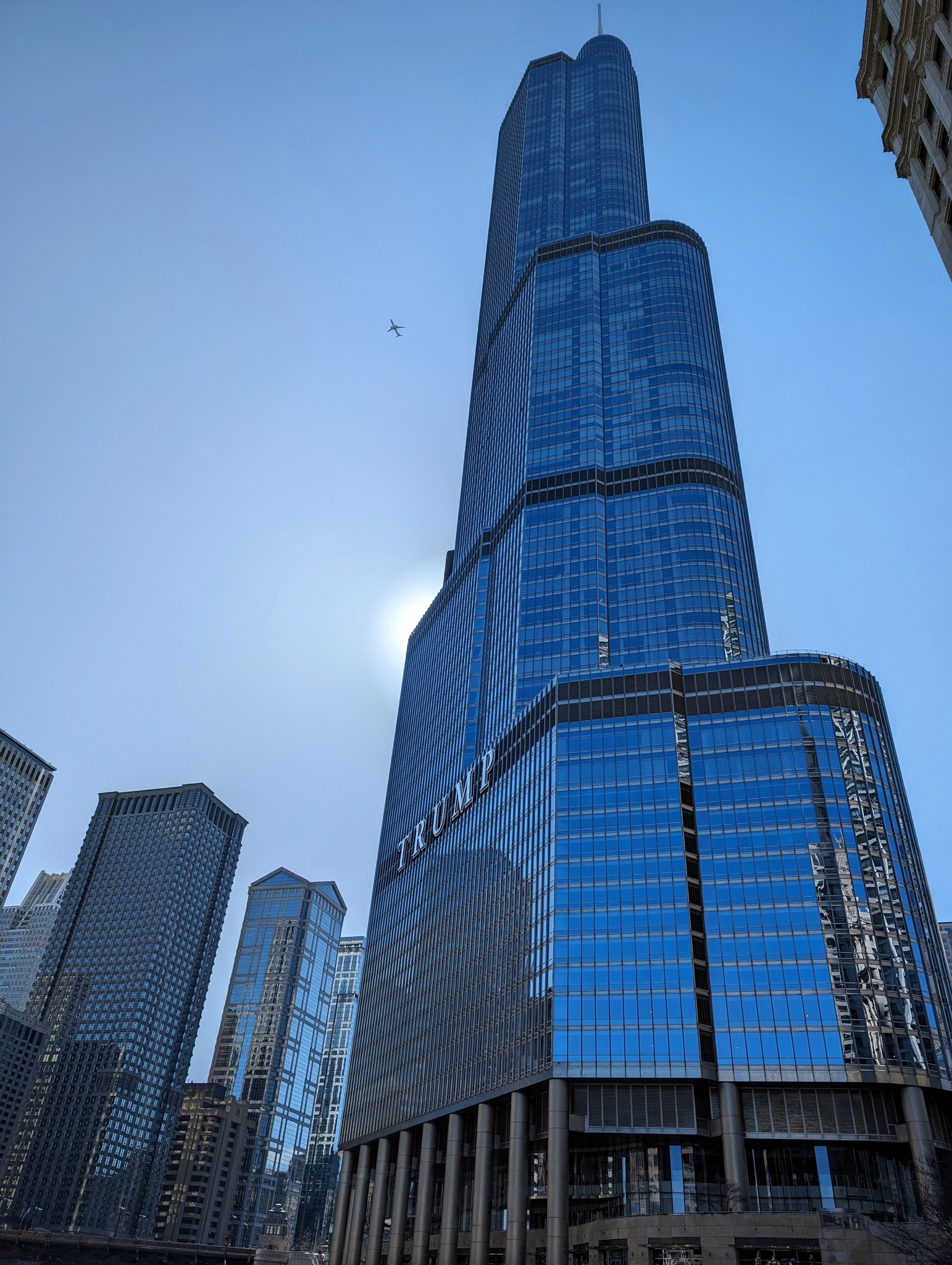 Trump Tower is the “elephant in the room” in the middle of Chicago, with “TRUMP” spanning two stories. The innovations developed for this tower were then used to build Burj Khalifa.